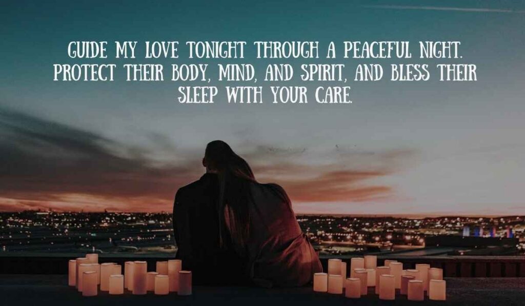 Guide my love tonight through a peaceful night. Protect their body, mind, and spirit, and bless their sleep with Your care.