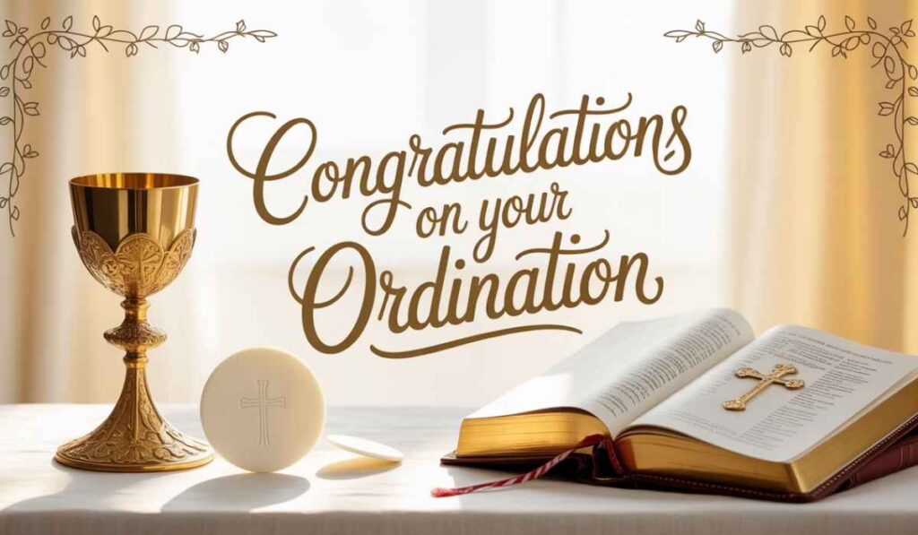 - “Heartfelt ordination congratulations messages to you! Your journey of faith has led to this beautiful moment. May blessings surround your ministry always.”