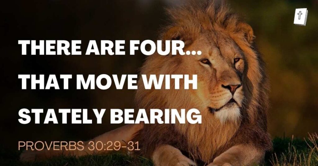 “Three things are stately in their tread; four are stately in their stride: the lion, which is mightiest among beasts and does not turn back before any; the strutting rooster, the he-goat, and a king whose army is with him.”